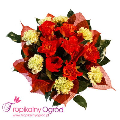 Bukiet składa sie z Róż i Gozdzików wraz z przybraniem. Do bukietu dołączony jest bilecik z życzeniami. KOD 193