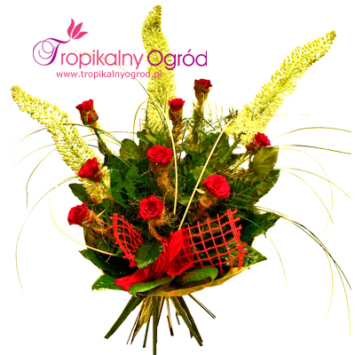 Czerwono-złoty wytworny bukiet to podarunek płynący prosto z serca. Najlepszy na okazję : miłość, urodziny, imneniny, przeprosiny, Dzień Matki i wiele innych okazji… KOD 167