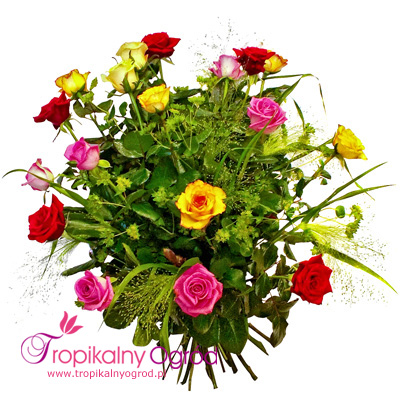 Osiemnaście kolorowych Róż, z eleganckim przybraniem. Najlepszy na okazję : miłość, urodziny,imieniny, przeprosiny, Dzień Matki… KOD 175