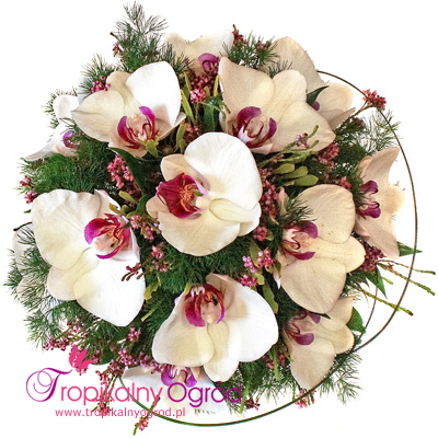 Bukiet ślubny składający się z Storczyka Phalaenopsis. Do bukietu ślubnego przypinka dla Pana Młodego gratis ! *Wiązanka ślubna przedstawiona na zdjęciu, na państwa życzenie może się różnić kolorem lub kwiatami z uwzględnieniem indywidualnych potrzeb Pani Młodej. W celu ustalenia szczegółów prosimy o kontakt telefoniczny, mailowy lub osobiście w kwiaciarni. KOD 050