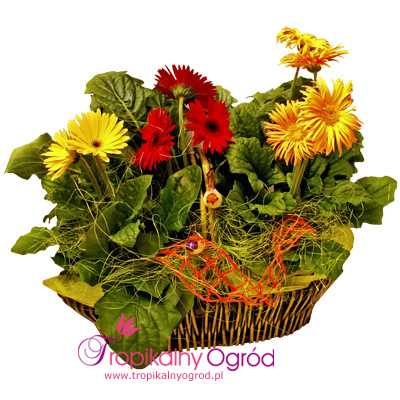 Kompozycja w koszyczku z gerber doniczkowych, na pewno wzbudzi zachwyt obdarowanej osoby. Najlepszy na okazję: imieniny, urodziny, miłość, podziękowanie i nie tylko.. KOD 154