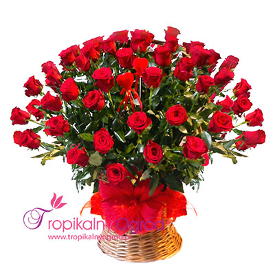 Pięćdziesiąt Róż bordowych w koszu. Najlepszy na okazję: imieniny, urodziny, miłość, podziękowanie i nie tylko.. KOD 225