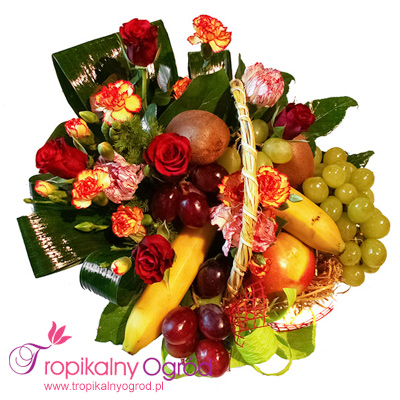 Zestawienie kwiatów i owoców to idealny prezent dla każdego. Podaruj piękno! Do bukietu dołączony jest bilecik z życzeniami. KOD 191