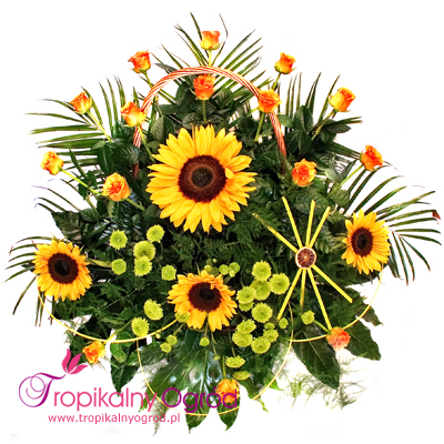 Elegancka kompozycja w koszu złożona z Słoneczników, Róż i Santini. Ten kosz niesie ze sobą wiele radości, które teraz możesz wysłać do wybranej osoby. Najlepszy na okazję: imieniny, urodziny, ślub, podziękowanie, rocznice i nie tylko.. KOD 185