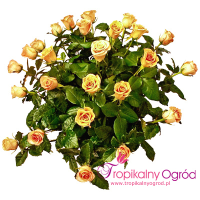 Wiązanka z 25 róż w kolorze łososiowym. Najlepszy na okazję: urodziny, ślub, przeprosiny, Dzień Matki i wiele innych… KOD 135