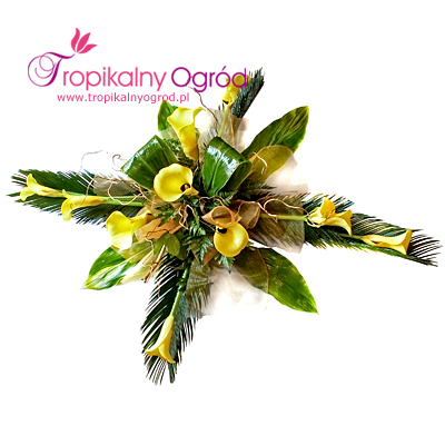 Wiazanka pogrzebowa z Calli. Do wiązanki można dołączyć szarfę z napisem. KOD 186a